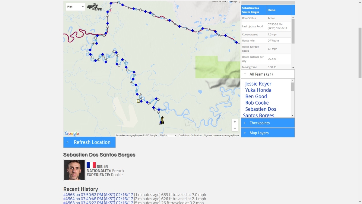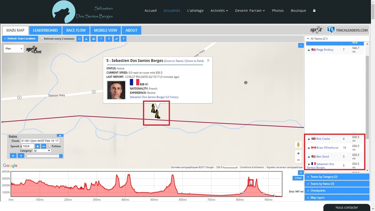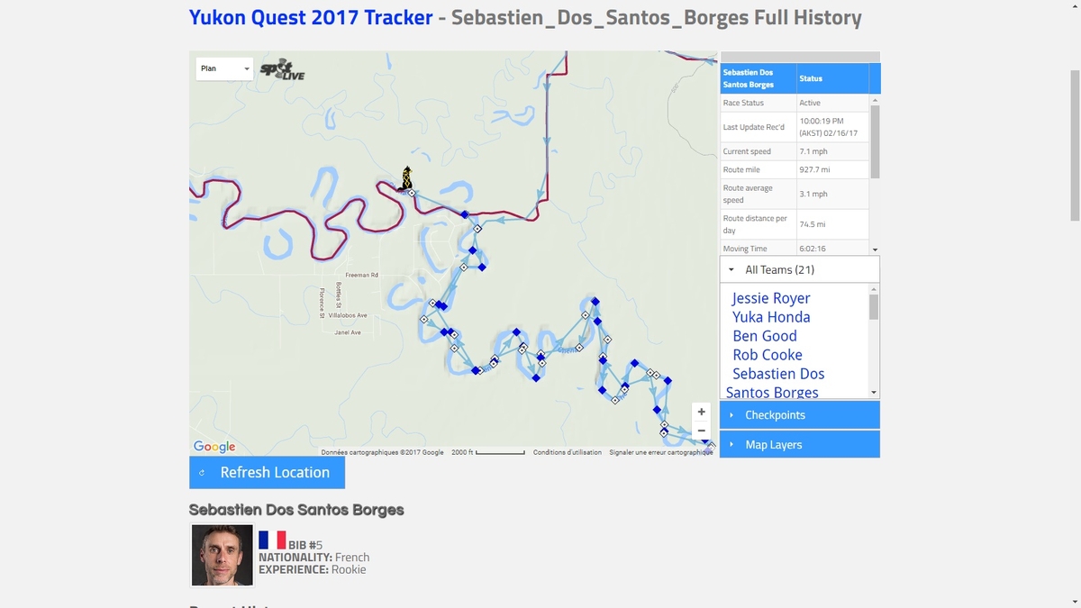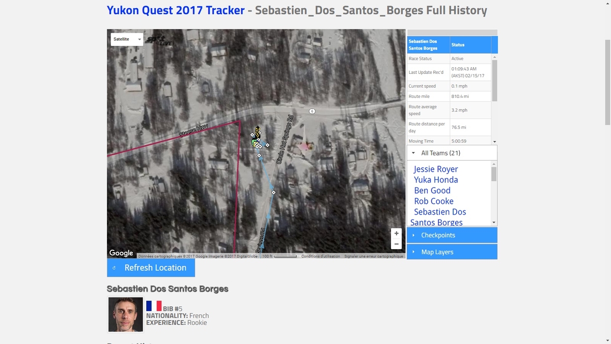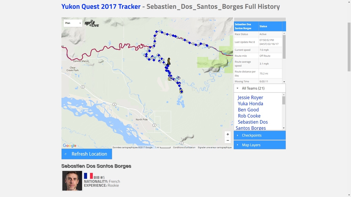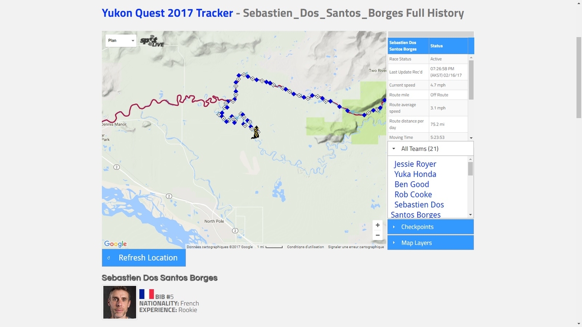 10h20 : Sébastien et la Polar Team sont à 8 miles de Fairbanks et dans la bonne direction ! :D